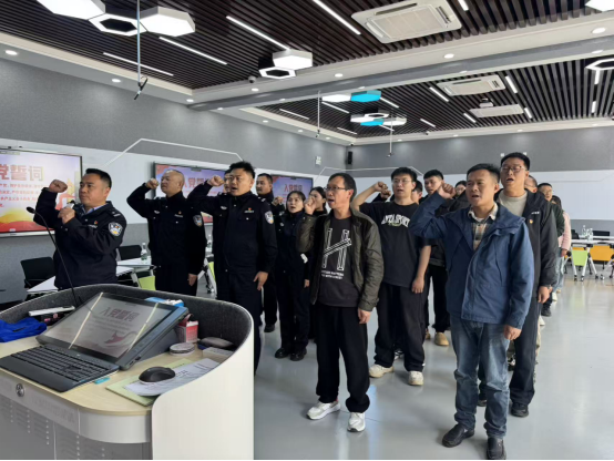 紧接着,全体党员面向鲜红的党旗,庄严举起右拳,重温入党誓词。铿锵有力的誓言回荡在活动现场,坚定了每一位党员的初心使命和责任担当。