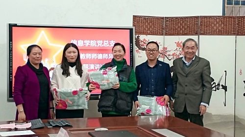 云中讯(通讯员 李越峰)为引导广大教师以德立身、以德立学、以德施教、以德育德,落实立德树人根本任务,坚持“四个相统一”,争做“四有”好老师,当好学生的“四个引路人”。2020年10月29日,信息学院于翰墨楼109举行了第一届教师师德师风主题演讲比赛。担任本次演讲比赛的评委有基础医学院王志红教授、马克思主义学院高碧青副教授、信息学院李永强教授、信息学院学工办主任赵林波及信息学院优秀讲师胡蓉蓉,出席本次比赛的还有信息学院党总支副书记杨莉及信息学院全体教师。此次比赛由信息学院团总支书记普奕主持,共有7位教师选手参加本次比赛。