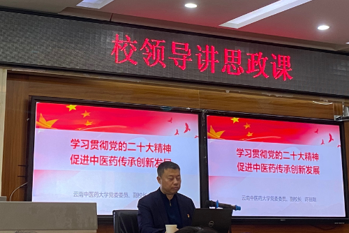 陈祖琨从“深刻领会 传承精华与守正创新,坚定自信 推进中医药振兴发展,责任担当 助力中医药强省建设”三个层面,结合云南省中医药现状、学校历史、现代信息技术,融入中医典故、中医知识等中医元素,深刻阐述了“促进中医药传承创新发展”的丰富内涵。