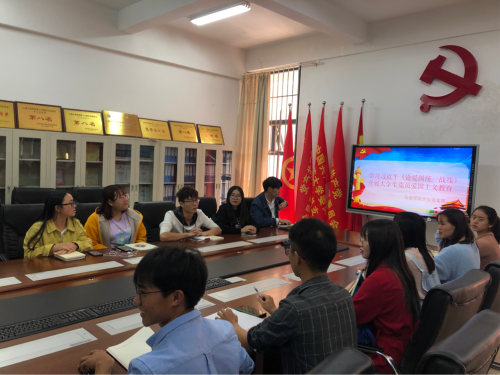 云中讯(通讯员 王鹏程 普奕)2019年9月29日下午,信息学院学生党支部全体成员在翰墨楼109会议室学习习近平《论爱国统一战线》,开展大学生党员爱国主义教育主题党日活动。本次学习由16级李国娇同志和李进同志主讲。
