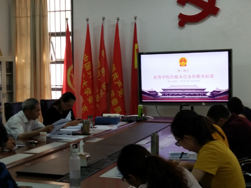 (云中讯 杨林静)2019年5月30日,信息学院教师党支部组织全院教职工在翰墨楼109会议室开展政治理论学习,同时邀请李院长及杨副院长两位领导为全院教职工上党课,整个会议的学习议程都围绕着如何把中国建设为社会主义现代化教育强国来展开进行。