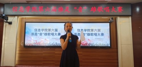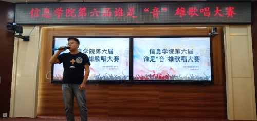 云中讯(通讯员 陈梓涵)为引导青年团员不忘初心,牢记使命,树立家国情怀,2019年5月8日16:10信息学院团总支学生会组织的信息学院第六届谁是“音”雄歌唱比赛在翰墨楼二楼报告厅201顺利进行。共九组同学参加了此次比赛。评委老师为信息学院李永强院长,贾婧蓥、普奕、赵林波、李娜、李越峰老师,以及艺术团负责人赵虹同学和学生会代表王鹏程同学。主持人为李志燕同学和杨玉龙同学。