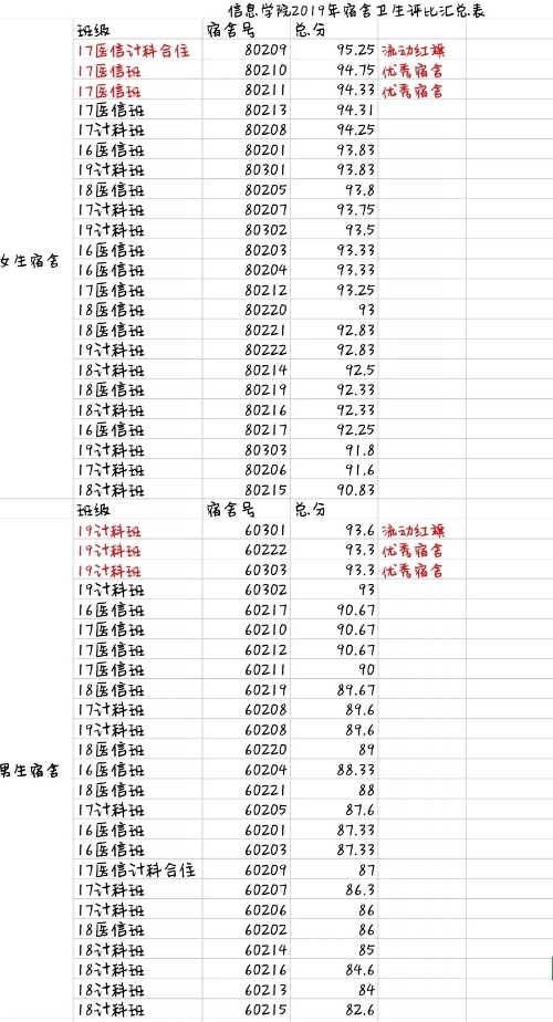 参加宿舍检查的伙伴们在经过认真细致的检查后,给每个宿舍打了分,最终确定了评分的结果。学生会成员还给表现最好的男生宿舍和女生宿舍颁发了流动红旗,以此作为鼓励。此次卫生检查结束了,希望优秀的宿舍继续保持,表现不太好的宿舍能够有所改进。宿舍之文源于友爱,宿舍之明源于洁净!