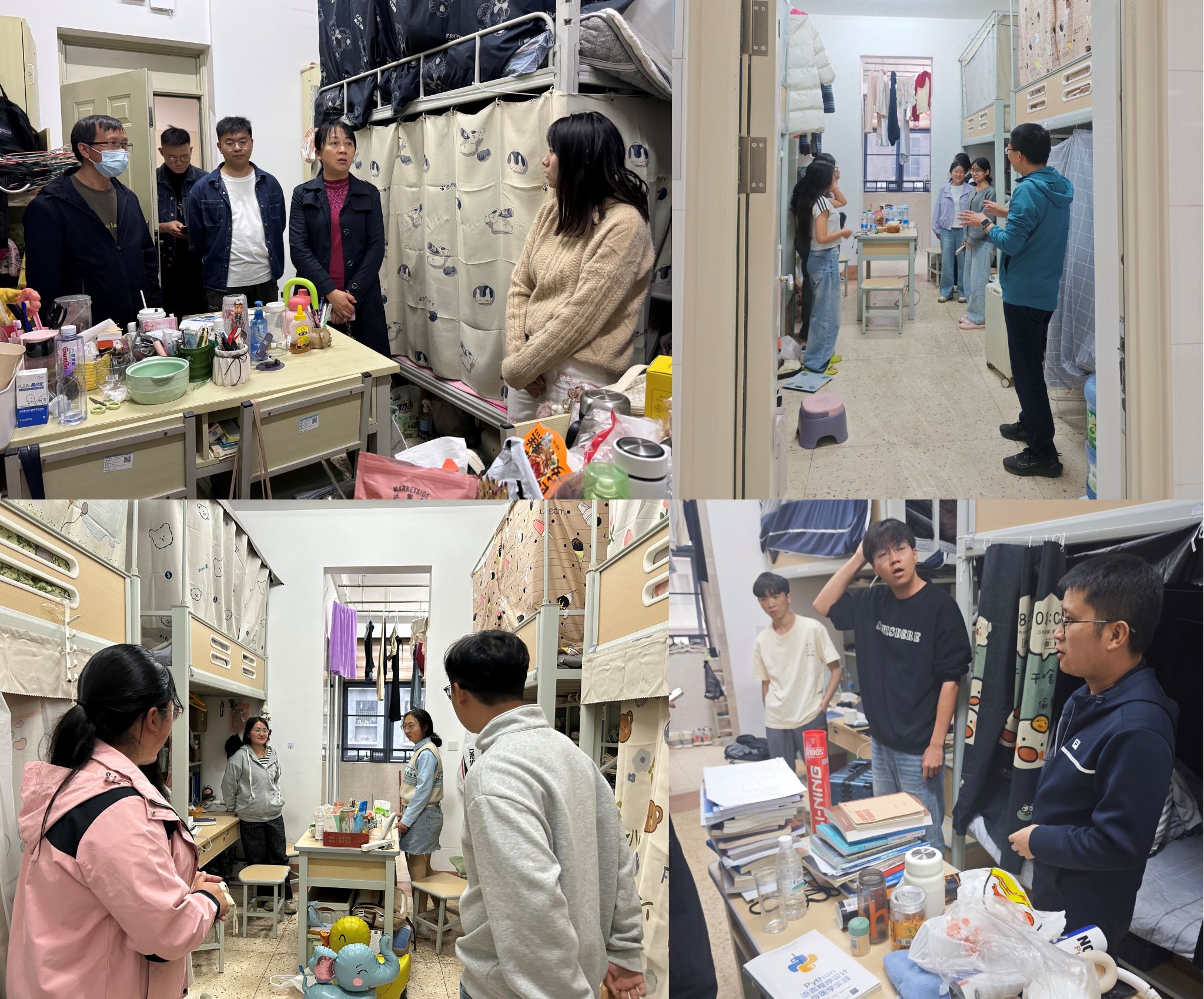 云中讯(通讯员:戴纪峰) 新学期伊始,为加强学生返校安全管理、推进学习就业等工作,消除宿舍安全隐患、解决学生实际困难,2026年3月8日,信息学院院长崔茂应、党委副书记杨莉、网络信息管理中心副主任叶东海带领班主任、辅导员,深入学生宿舍开展走访慰问,全面摸底学生返校、安全卫生等情况,为学生送去新学期问候,助力学生做好开学准备。