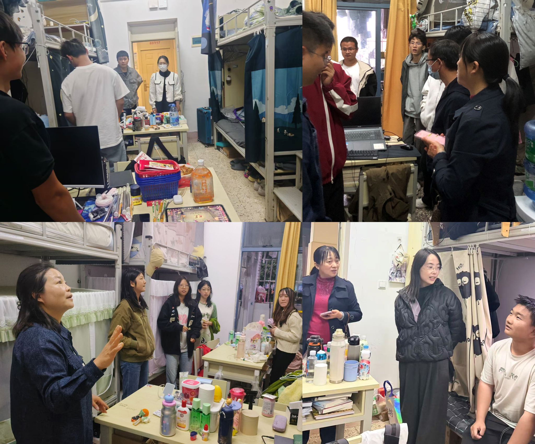 查寝期间,老师们细致检查宿舍用电安全与环境卫生,强化学生安全防范意识和出行安全。同学们承诺,将严格遵守宿舍管理规定,共同维护安全整洁的宿舍环境。