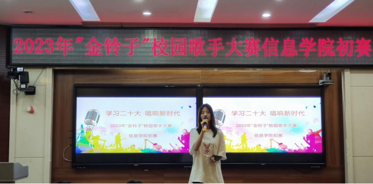 云中讯(翁显会)为贯彻落实好党的二十大精神,营造良好的学习氛围,用歌声唱出新时代,用旋律谱出新征程,激发我校学生爱党、爱国、爱社会主义的情怀,做敢想敢为又善作善成的新时代好青年。信息学院于5月8日18:30在翰墨楼201举办了2023年“金玲子”校园歌手大赛及主持人大赛。担任此次比赛的评委分别为我院各班文艺委员。