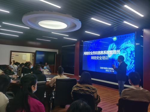 云中讯(通讯员 李娜)为确保学校网络和业务系统正常和安全运行,强化网络安全意识,提高安全防护水平,2022年10月14日,网络信息中心组织学校全体网络安全员和信息系统管理员,在翰墨楼120会议室开展网络安全专项培训,学校网络信息中心全体人员参加培训。